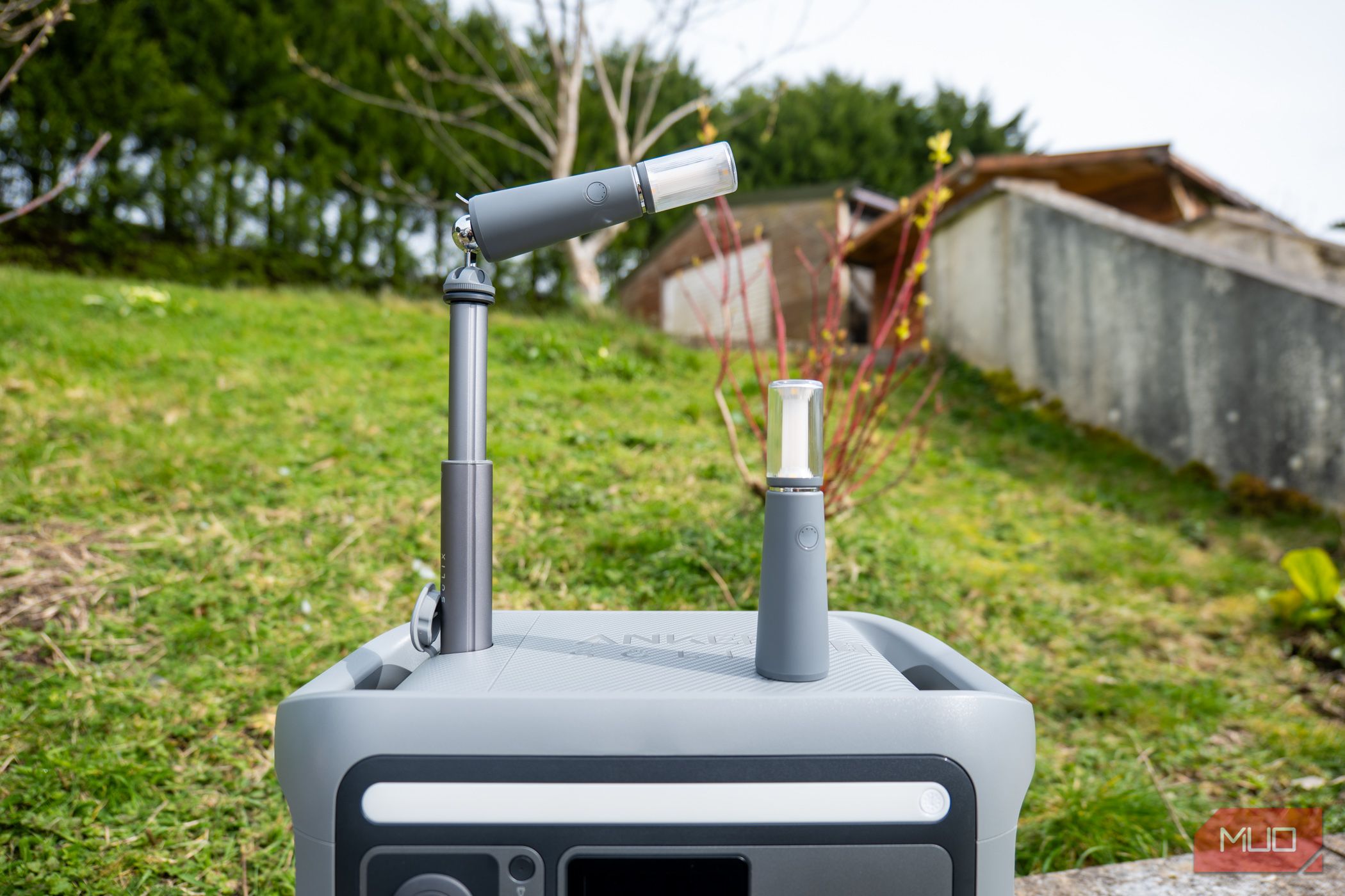 The power specifications are nothing remarkable in the world of portable power stations. But the addition of two handy flashlights hidden in the top of the case and an extendable mount to provide overhead lighting set a new standard for these devices.